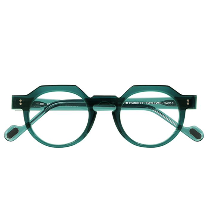 Ochelarii Anne et Valentin Daylewis 24C18 Green din colecția HYPERCUT, cu ramă tip panto, impresionează prin linia structurată a sprâncenelor și echilibrul excelent al proporțiilor, oferind o eleganță masculină atemporală. Tăiați cu precizie milimetrică din acetat de calitate, ochelarii Daylewis au un detaliu metalic subtil la capătul brațelor, reprezentând un semn discret al rafinamentului.