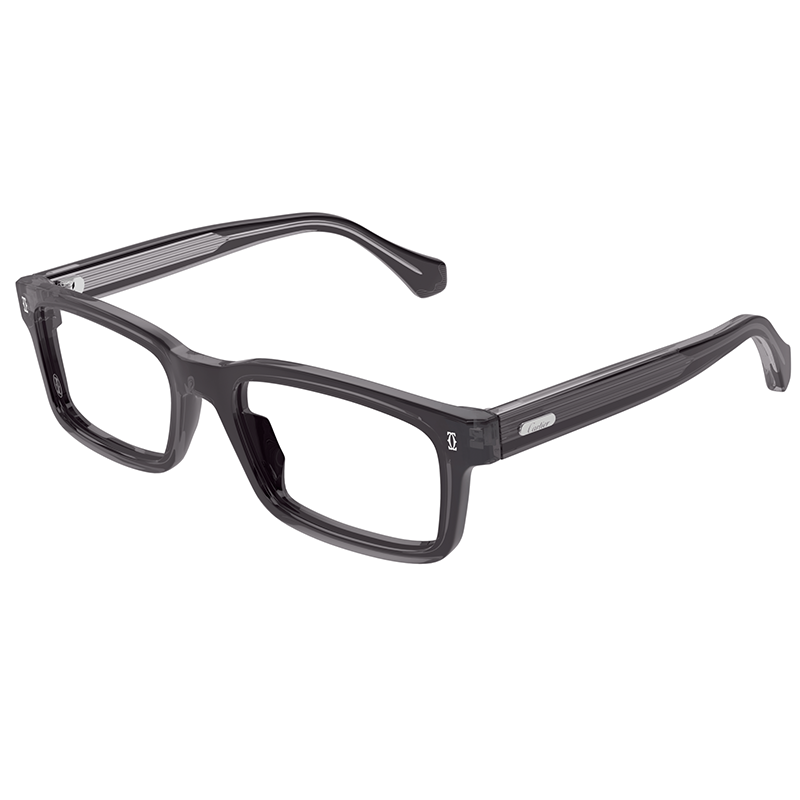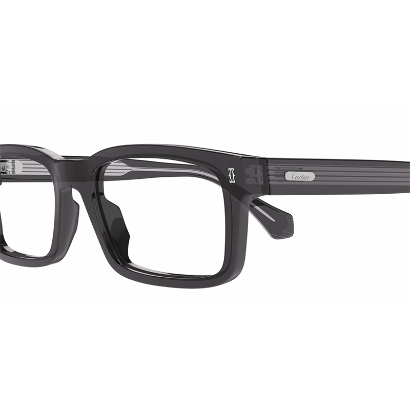 O formă clasic rectangulară, realizată din acetat reciclat într-o nuanță de gri mat, pentru un look retro-chic masculin: Cartier CT0291O 011 Grey sunt ochelarii de vedere realizați integral în Italia, potriviți fețelor rotunde sau ovale.