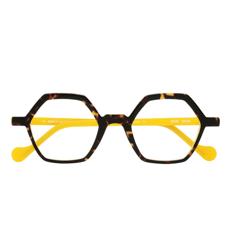 Anne et Valentin Azur 25A29 Havana Yellow au rame hexagonale foarte chic și o cromatică puternică care aduce un aer sofisticat. Ramele Azur au fost create pentru acel tip de personalitate care adoră să bea espresso scurt, să se plimbe prin galeriile de artă și să admire străduțele necunoscute din orașele vechi.