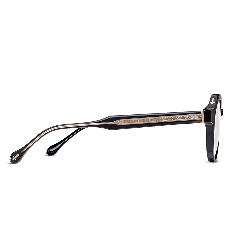 La intersecția dintre atemporal și iconic, ochelarii Matsuda M1032 Black prezintă o ramă pantos îndrăzneață, cu incrustații metalice complexe, lucrate meticulos de maeștrii japonezi. Întregul design este realizat din acetat japonez sculptat și polișat manual pentru obținerea unui efect luxos.