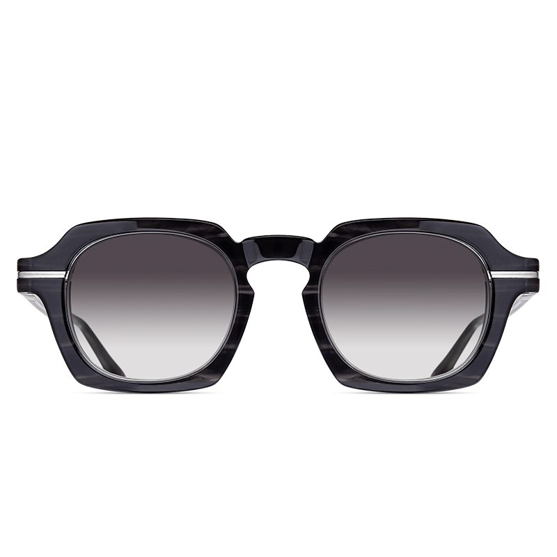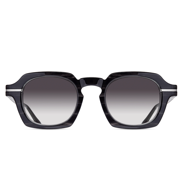 Matsuda M2055 SG Black Stripe Brushed Silver: acest model de ochelari este o combinație armonioasă de acetat și metal care evidențiază expertiza brandului japonez în prelucrarea artizanală a celor două materiale. Forma geometrică îndrăzneață, cu o punte nazală tip gaură de cheie, este armonizată de ornamentele metalice contrastante, polișate manual pentru obținerea unui efect luxos..