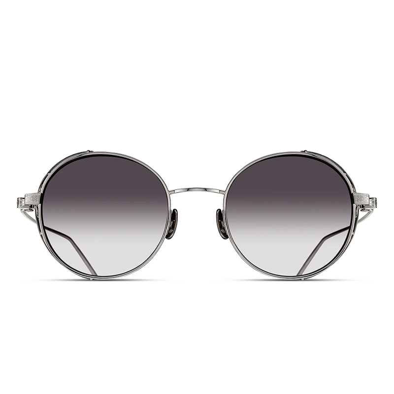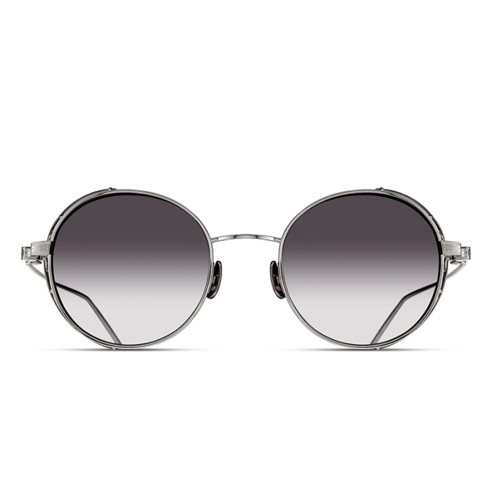 Matsuda M3152 PW Palladium White este un model gândit a fi un adevărat studiu al preciziei arhitecturale. Acești ochelari de soare îmbină titanul japonez ușor cu detalii complexe, precum gravura M+N specifică Matsuda și scuturi laterale ornamentate cu accente lăcuite într-o nuanță de roșu profund - un tribut adus vitraliilor catedralelor gotice din Paris.