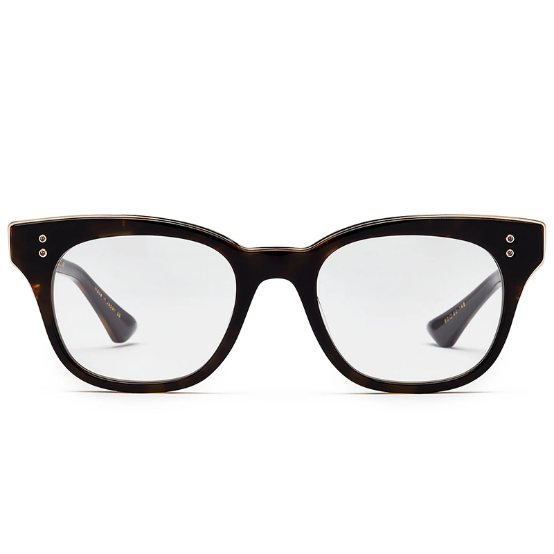 Cromatica havana realizată dintr-un acetat premium oferă un look deosebit de rafinat, grație elementelor aurii din titan și a finisajului impecabil.
