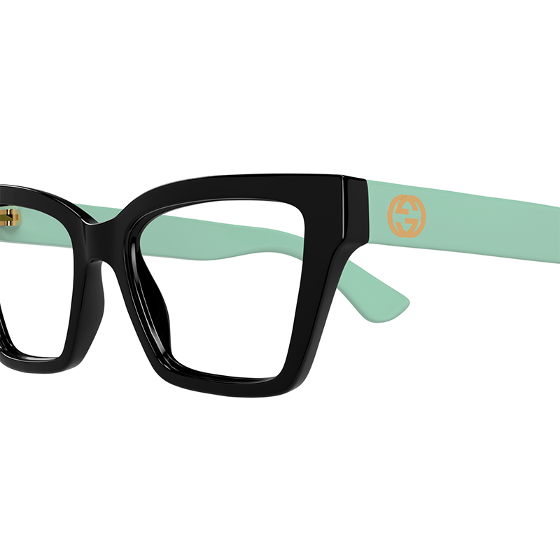 Femininul contemporan, reinterpretat cu unghiuri ascuțite și o cromatică vivace: ochelarii de vedere Gucci GG1715O 004 53 Black Green sunt un omagiu adus personalităților puternice, care știu ce își doresc de la viață.