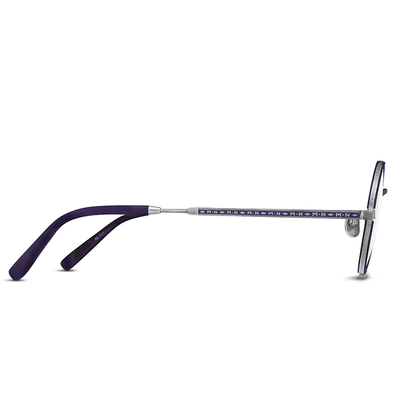 pince-nez”, strălucește prin finisajele din titan placat cu metale prețioase, reimaginate pentru lumea contemporană datorită inserției contrastante din acetat japonez de cea mai înaltă calitate. Brațele lăcuite manual evidențiază gravura emblematică a brandului nipon: