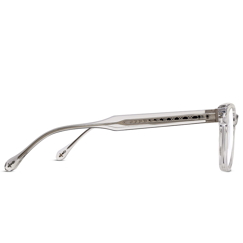 Aflați la intersecția dintre atemporal și iconic, ochelarii de vedere Matsuda M1035 Crystal au o ramă rectangulară flatantă, care este decorată cu incrustații metalice complexe, armonios îmbinate cu acetatul japonez lucrat artizanal. Ornamentele aurii au finisaj de metale prețioase.