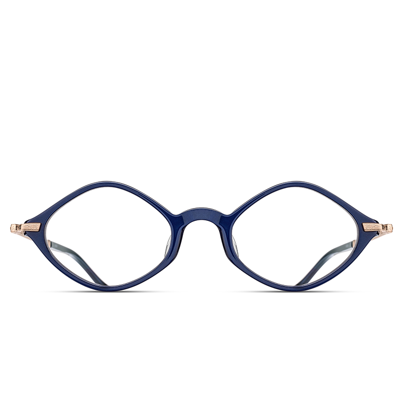 Modelul de ochelari M2066 Navy - Rose Gold reprezintă o retrospectivă a formelor geometrice popularizate de Matsuda în anii 1990. Lucrată artizanal din acetat japonez de cea mai înaltă calitate, forma de romb a ramelor face parte din cele mai îndrăgite modele feminine ale brandului nipon, în timp ce mixul cromatic bleumarin-auriu oferă un look nobil, amintind de artistocrația europeană. Brațele au fost realizate din beta-titan gravat manual.