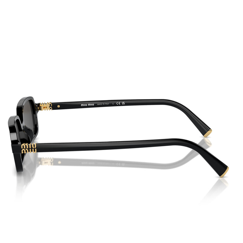 Cu o formă Y2K, dreptunghiulari și rame cu finisaj lucios, luxos, acești ochelari de soare Miu Miu MU 11ZS 16K 01O 51 Black Gold sunt accesoriul plin de rafinament care îți va oferi un look sofisticat, perfect pentru plimbat!
